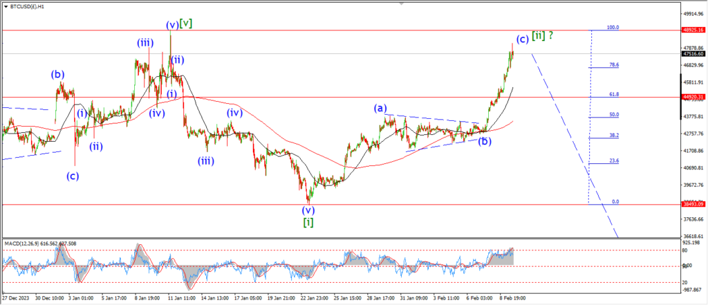 then wave ‘iii’ should turn lower and trace out five waves down by the end of next week if all goes to plan here.