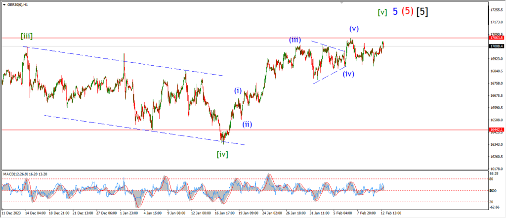So I will leave this pattern open for another high in wave ‘c’ tomorrow.