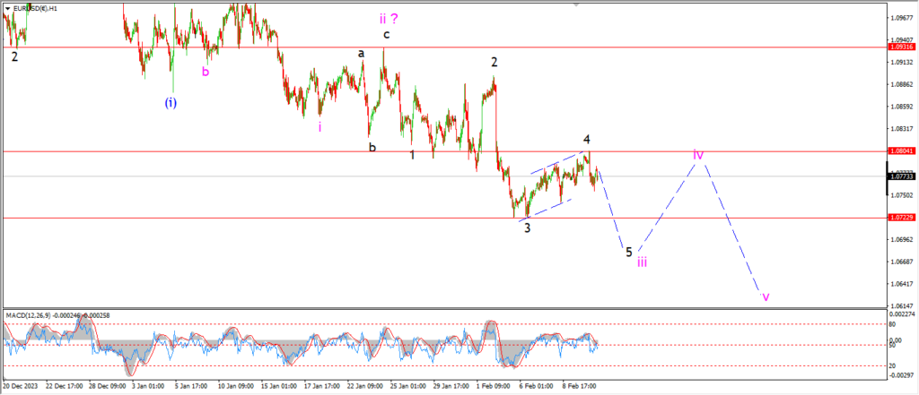 Wave ‘5’ of ‘iii’ should fall below 1.0723 at a minimum.