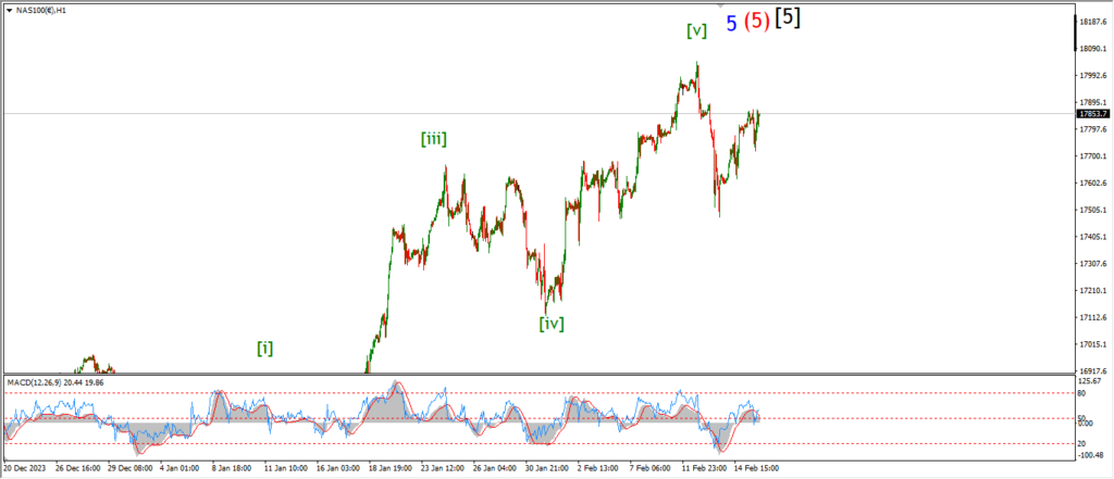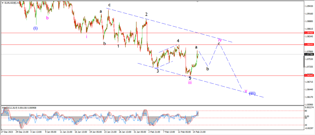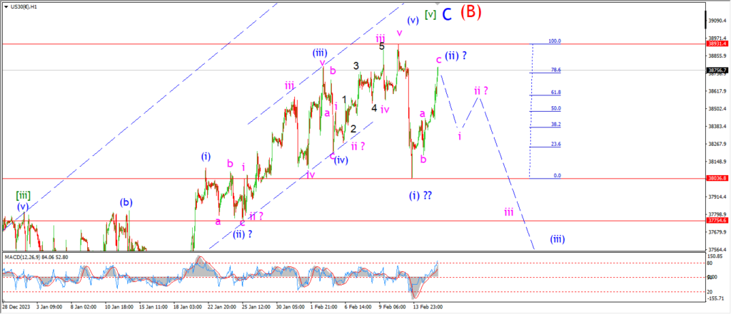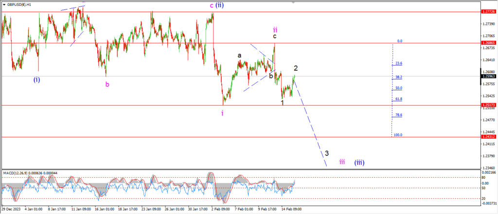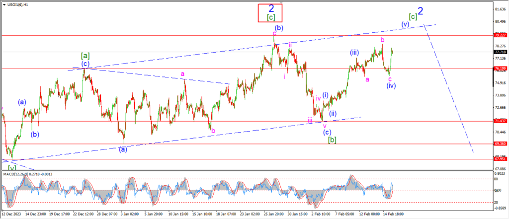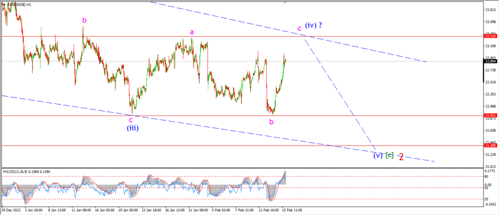 The hourly chart shows the new wave count for this wave ‘2’ correction.
