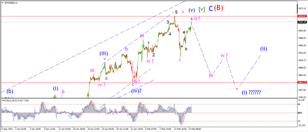 Wave ‘i’ of (iii) will retrace the rally that happened today if this count is correct.