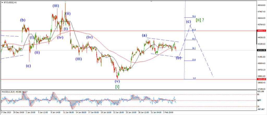 The price should turn lower into wave ‘3’ of ‘iii’ by Wednesday at the latest.