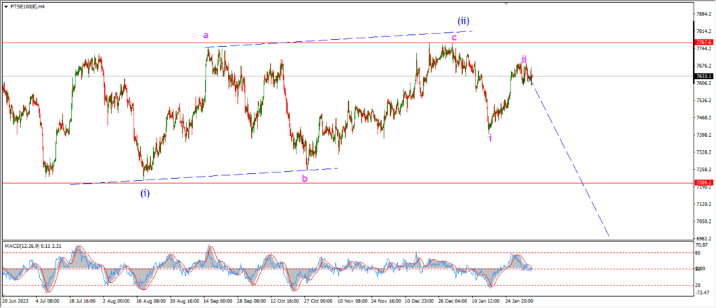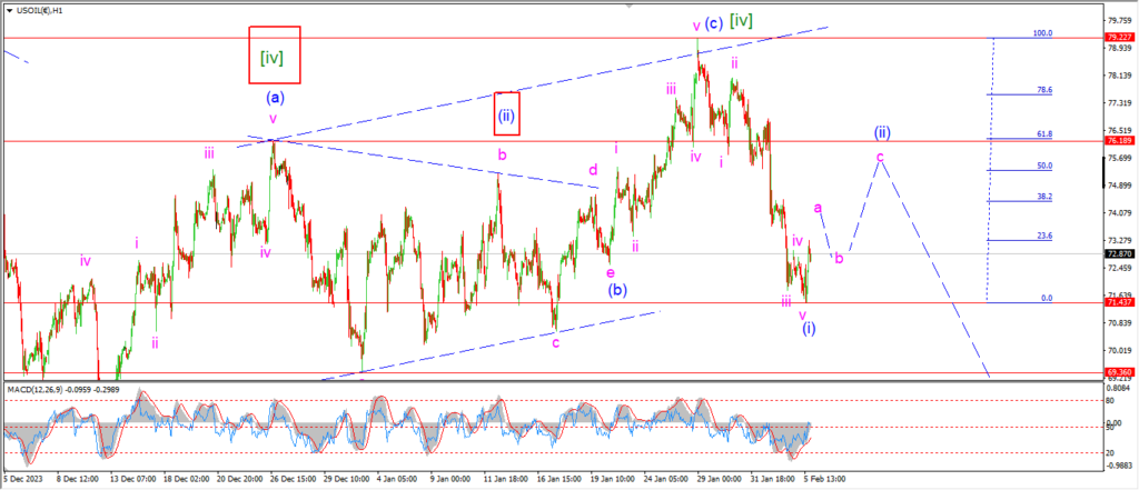 Wave ‘a’ of (ii) should hit the 74.00 handle in three waves.