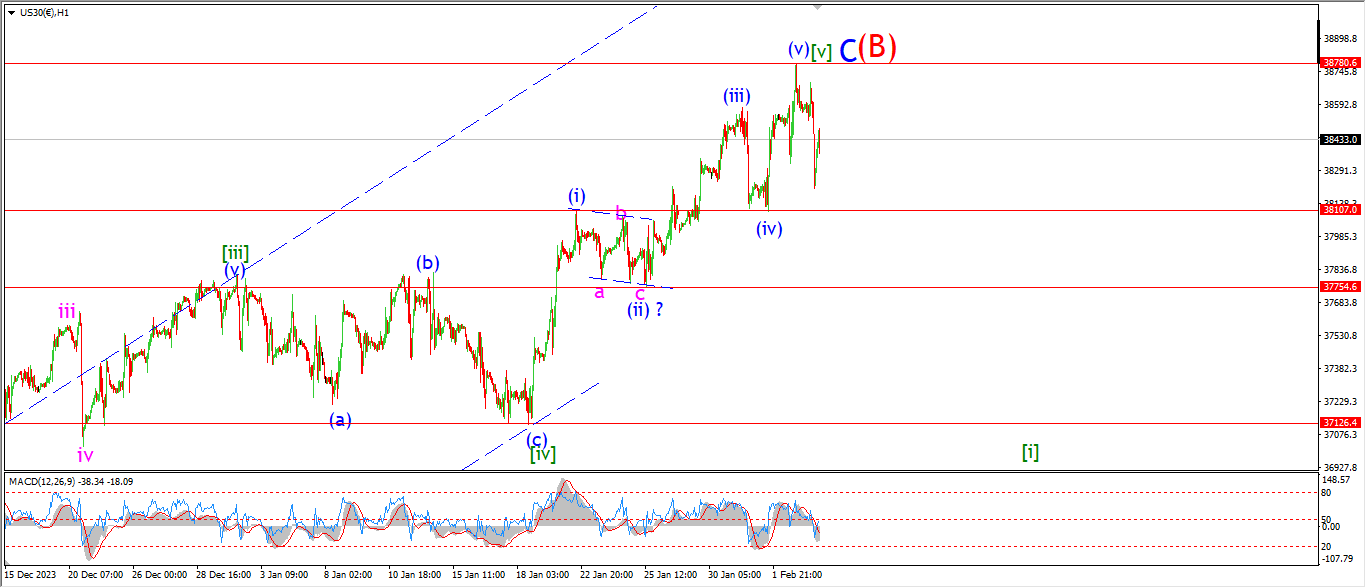 A break of 37750 at wave (ii) will add weight to the wave [i] down idea.