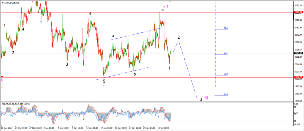 A break below the previous wave (i) low at 1972 will suggest wave (iii) is underway,