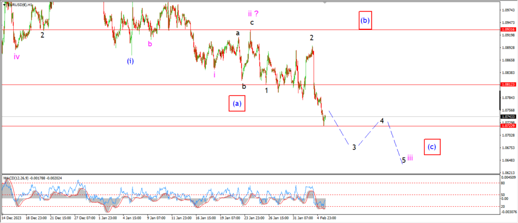 The wave count for wave [c] here is calling for a five wave decline with a target near 1.04 when complete.
