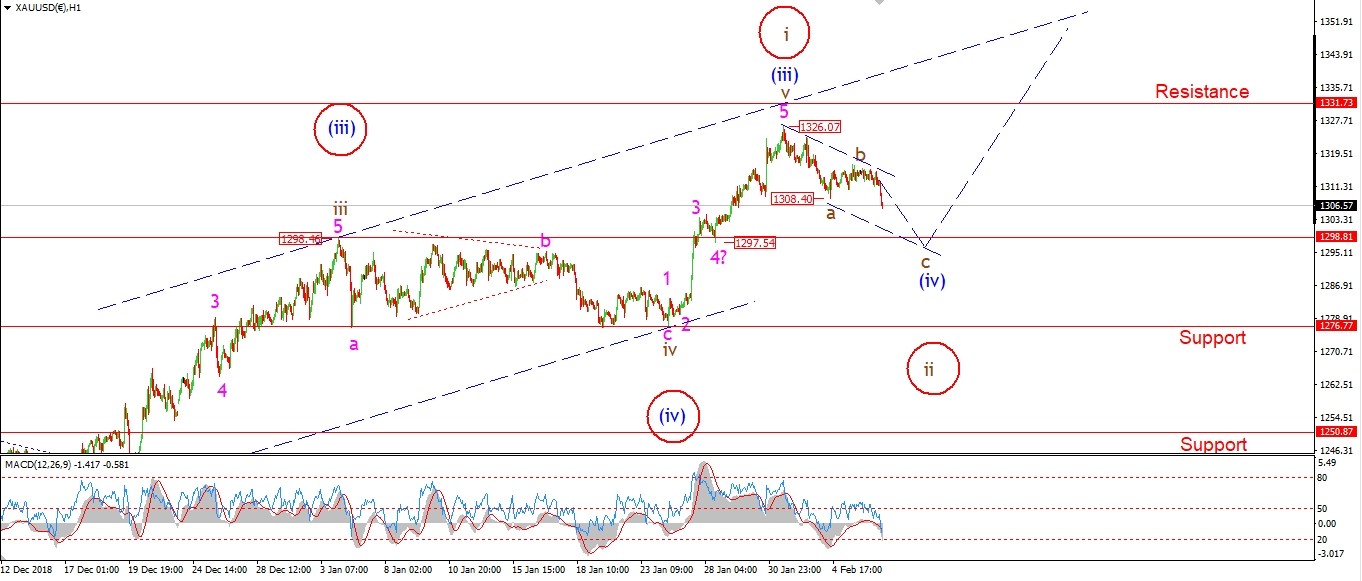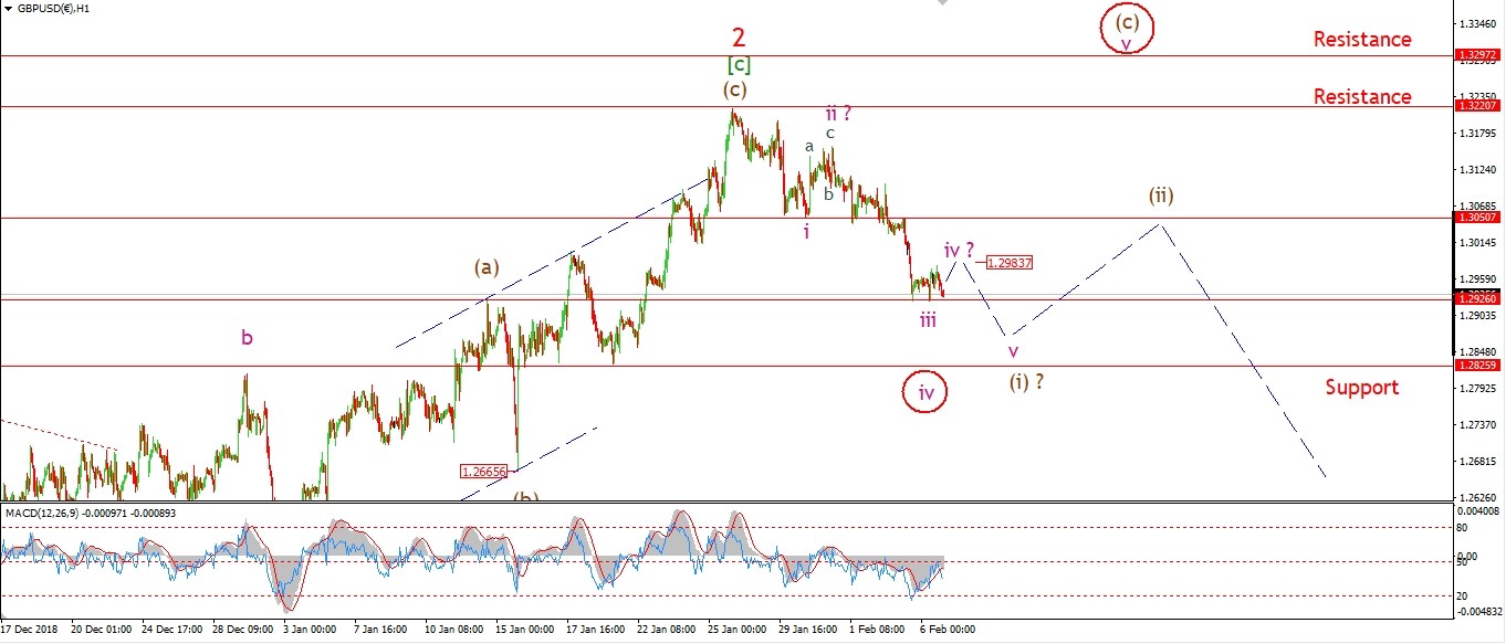 Watch for wave ‘iv’ to complete soon, below 1.3050 the wave ‘i’ low.