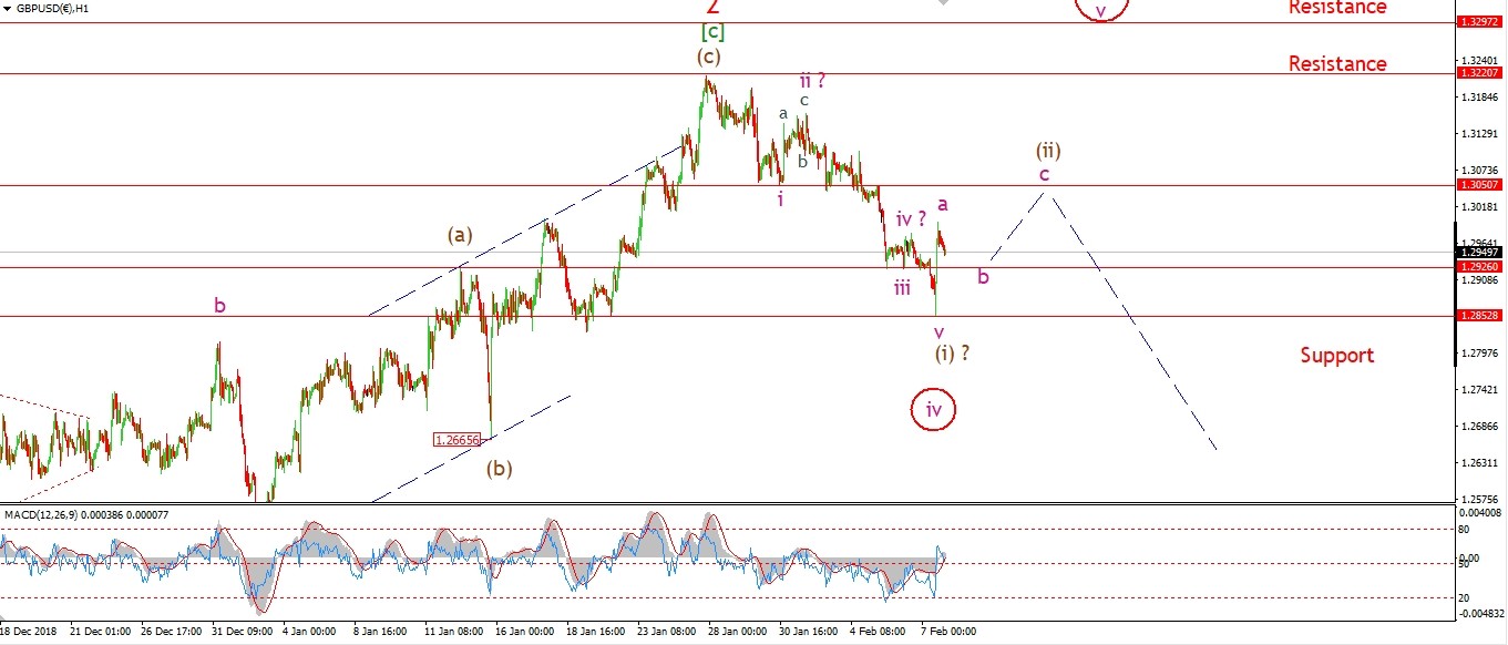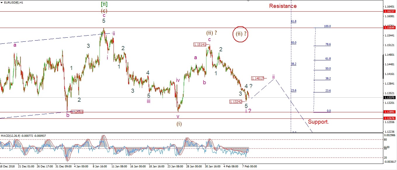 It is likely that wave ‘i’ down is now complete at todays lows of 1.1324.