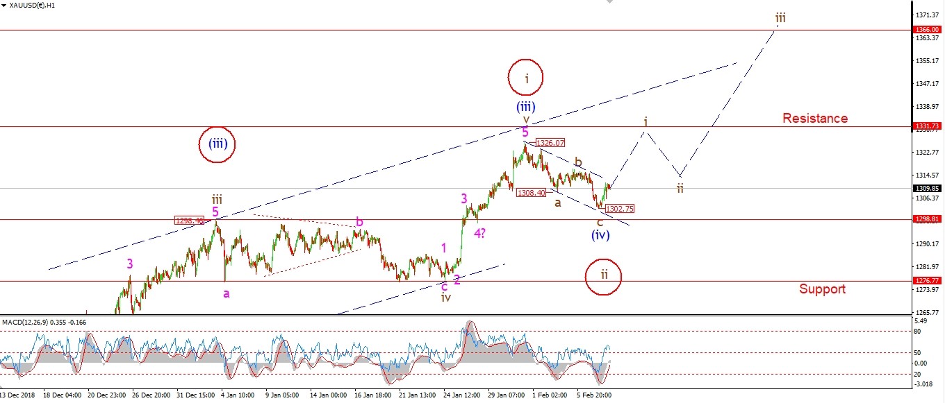 Watch for a five wave rally to break 1326 again in wave ‘i’ of ‘v’.