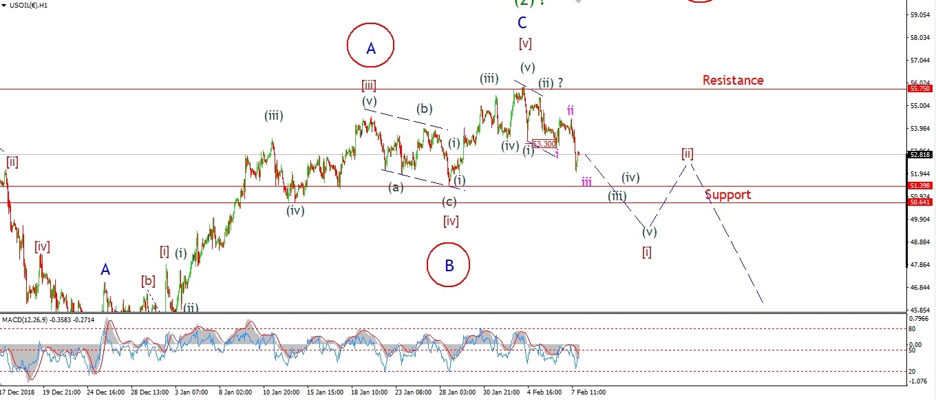 Watch for wave ‘ii’ to complete early and a continuation lower in a possible wave ‘iii’ of (i).
