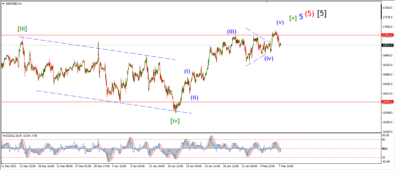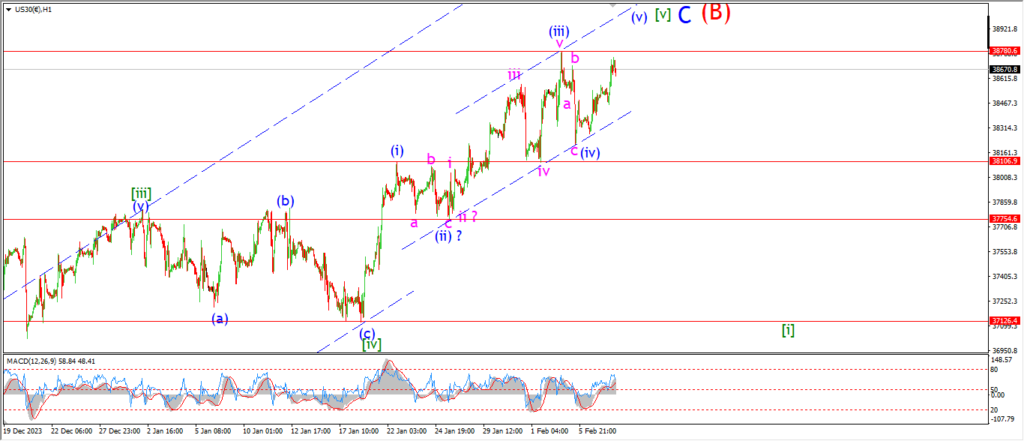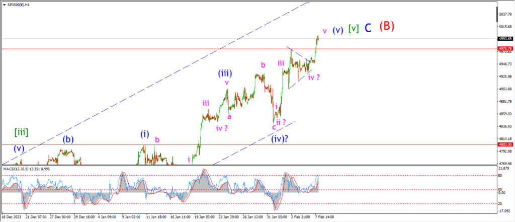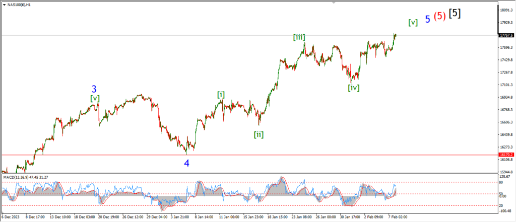 Wave (v) blue has now traced out five waves up and broken to a new high tonight.
