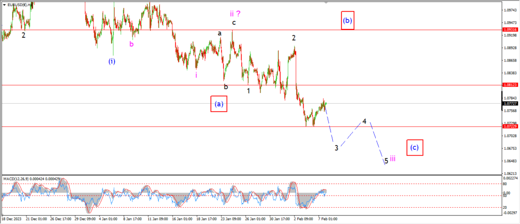 this pattern is corrective and we should see another step lower and a break of 1.0722 to complete wave ‘3’ of ‘iii’.