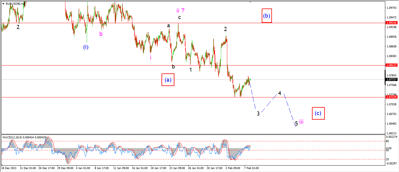 Watch for wave ‘3’ of ‘iii’ to complete with a break of 1.0722.