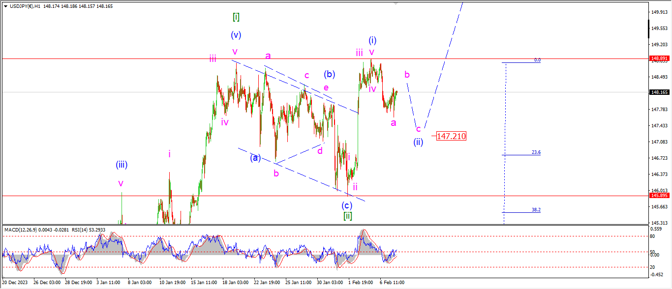 It seems like USDJPY has traced out a five wave decline off the wave (i) high now.