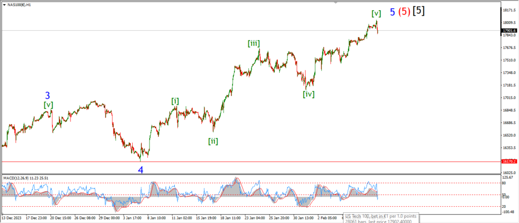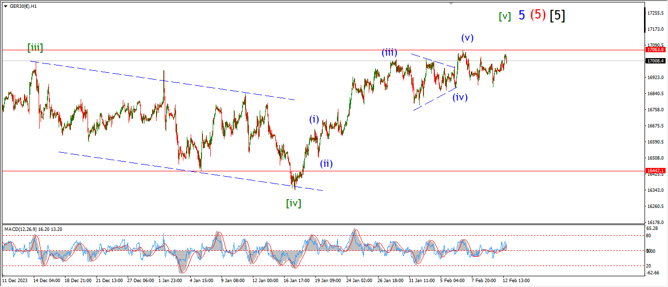 So I will leave this pattern open for another high in wave ‘c’ tomorrow.