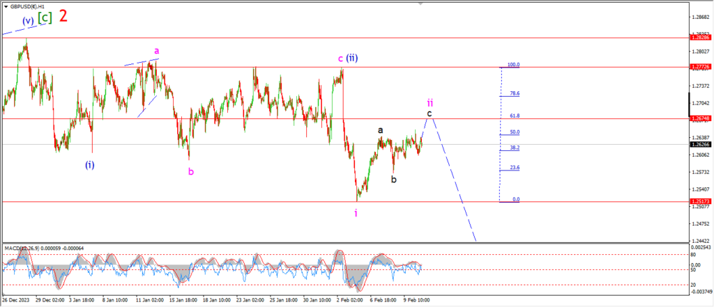 Wave ‘ii’ should should trace out a clear three waves up into 1.2675 at the 62% retracement level.