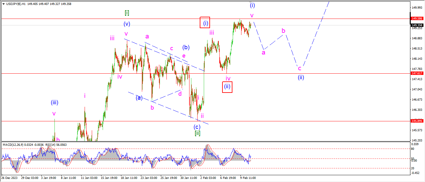 I am looking for wave (ii) to fall into the 147.60 area in three waves.