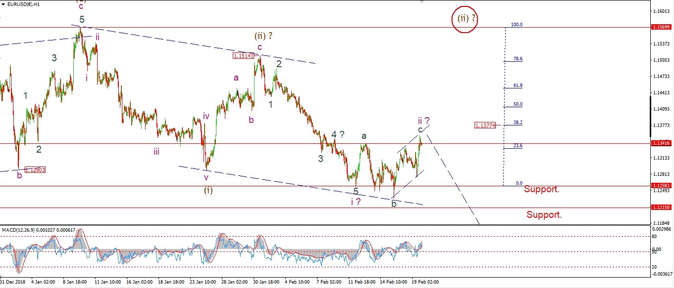Watch for a turn lower into wave ‘iii’ to begin with a break of 1.1258.