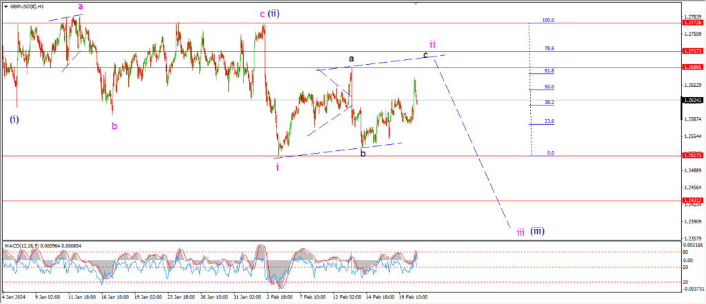 Watch for wave ‘c’ of ‘ii’ to complete with a break of the wave ‘a’ high at 1.2686.