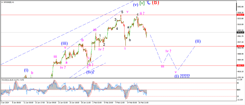 The initial target here is for wave ‘iii’ to break below the wave ‘i’ low at 4919.