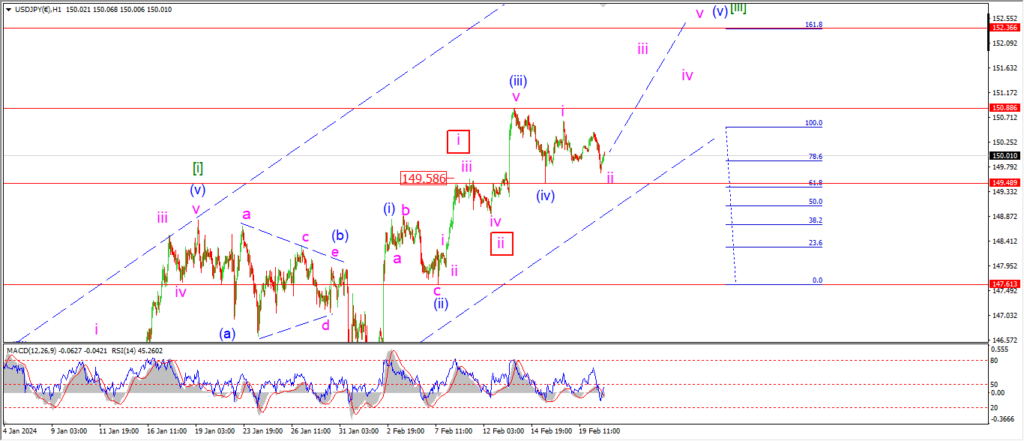 And the target for wave (v) remains at the 162% extension of wave (i) at 152.36.