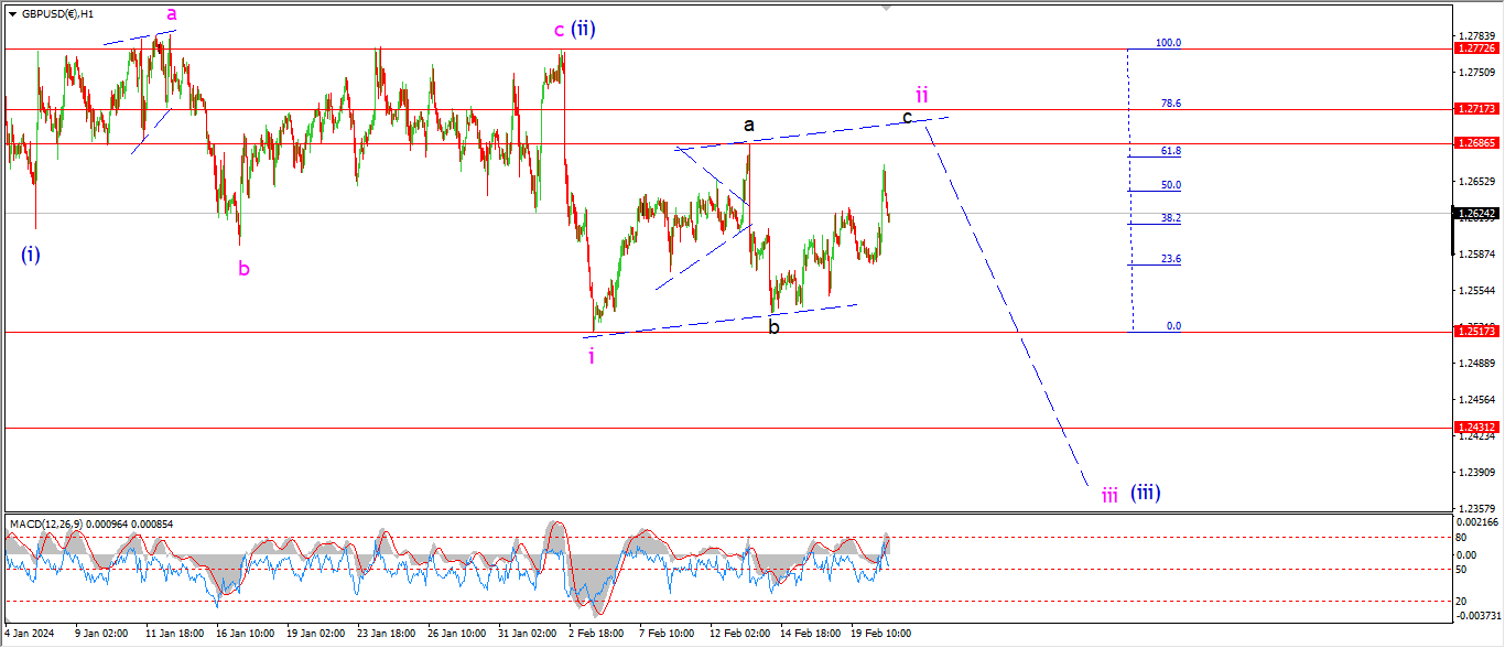 Watch for wave ‘c’ of ‘ii’ to complete with a break of the wave ‘a’ high at 1.2686.