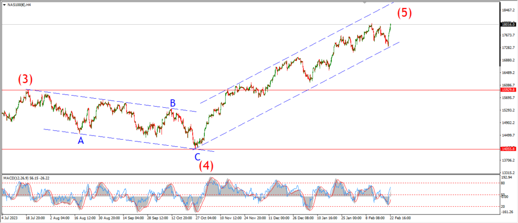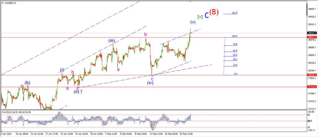 I switched to the alternate count tonight and this weeks high is now labelled wave (iv) of [c] of ‘2’.