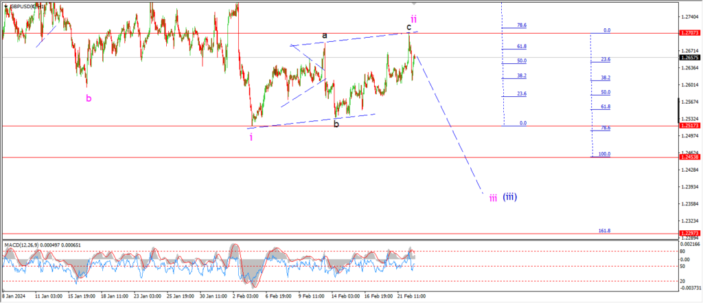 Wave ‘iii’ of (iii) should now take over and continue lower to break 1.2353 at a minimum.