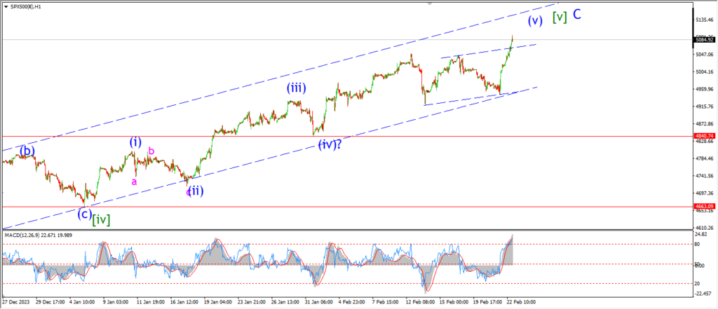I have not made up my mind on the internal count for wave (v) of [v] after this weeks new highs.