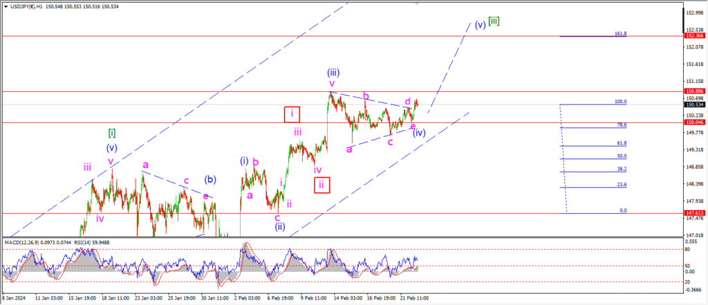 so watch for wave (v) to turn higher tomorrow and break above 150.88 as shown.