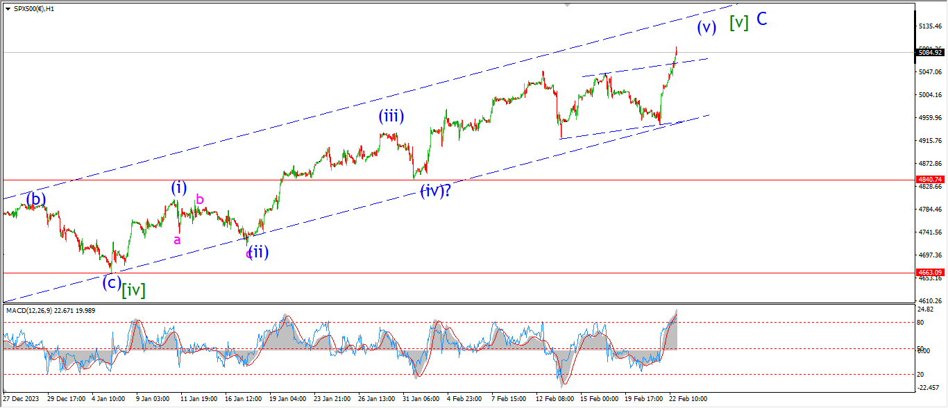 I have not made up my mind on the internal count for wave (v) of [v] after this weeks new highs.