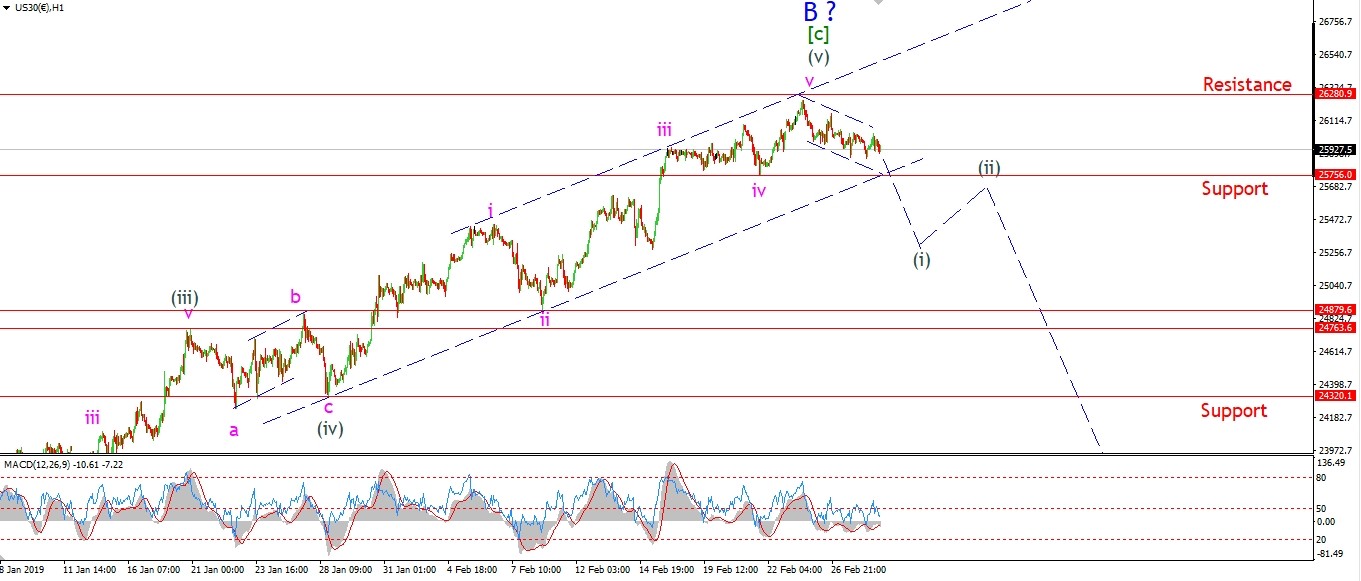 An impulsive break below 25750 will favor the idea that wave ‘B’ is now complete.