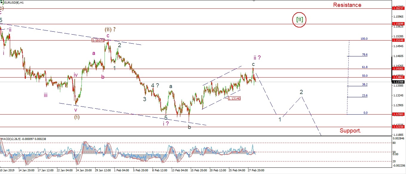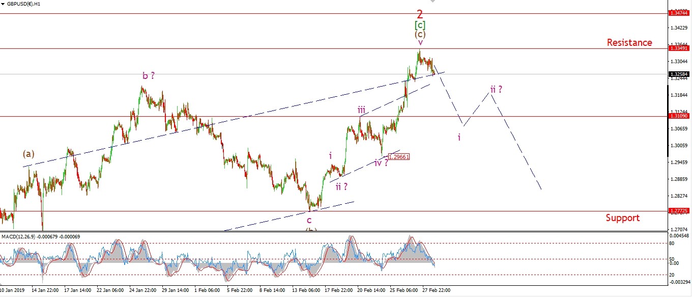 Watch for todays high to hold and a break of 1.1340 to signal the start of ‘iii’ down.