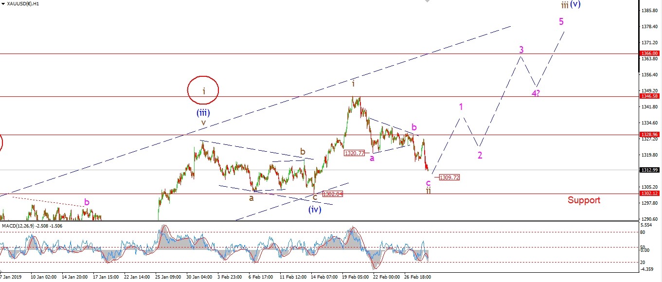 Watch for wave ‘c’ to complete above 1302 and possibly the beginning of wave ‘iii’ up to appear.