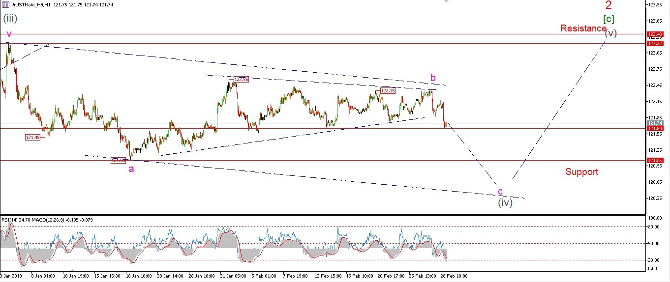 A break of the previous lows at 121.78 has forced a rethink of the wave count this evening.