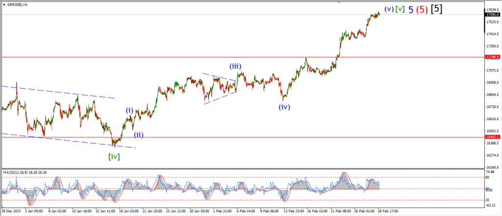 The possibility for a new high in wave ‘v’ remains today after as the market is holding in a corrective form above the wave ‘i’ high again.