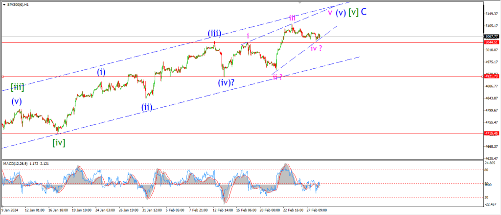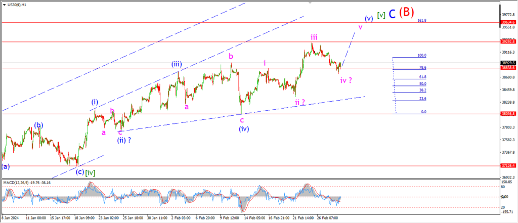 The Dow has now dropped back below that wave ‘i’ high today after drifting lower today.