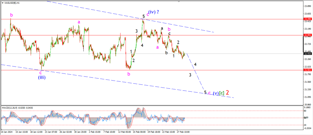Gold has turned slightly higher today into a possible wave ‘3’ of ‘c’.
