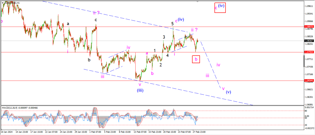 A decline back below 1.0795 will signal wave ‘iii’ of (v) is underway.