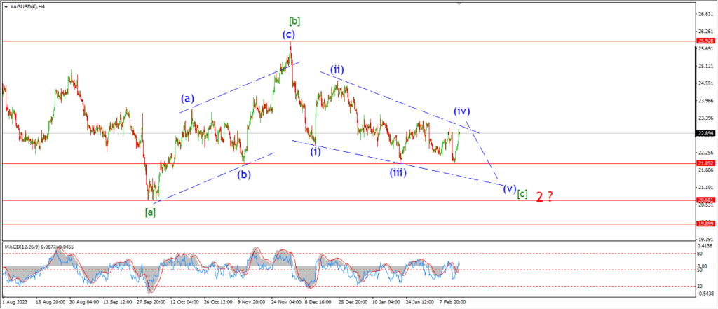 A rally in silver today as pushed the wave count slightly for wave ‘b’ of (v).