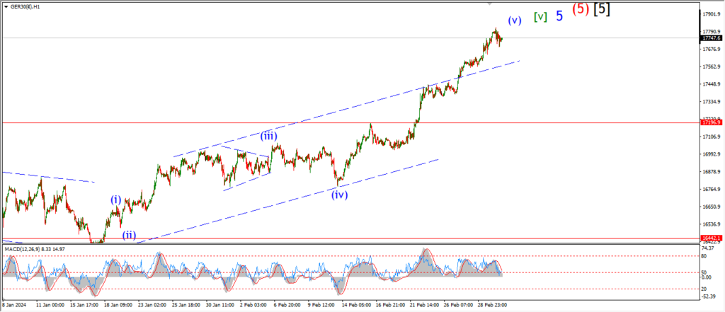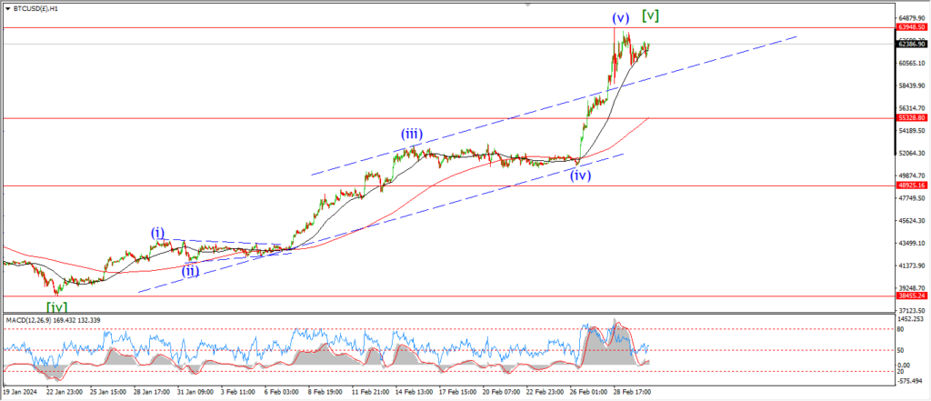 The price has created a five wave pattern in wave ‘i’ at todays high,