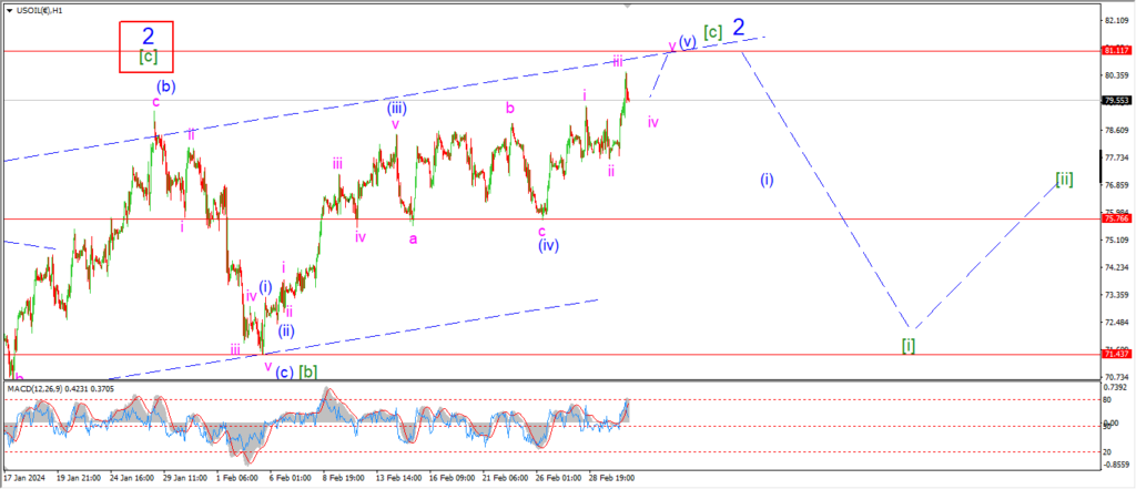 A drop back to the 75.00 area again will signal wave [i] of ‘3’ is underway.