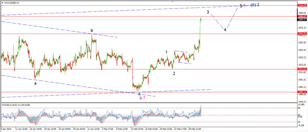 Gold has finally come through and pushed higher into wave ‘3’ of ‘c’ of (ii).