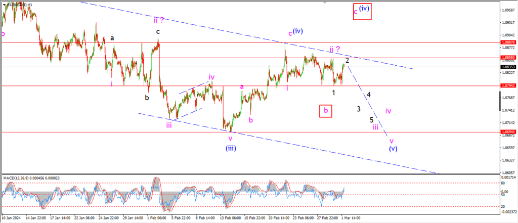 EURUSD turned slightly higher today and is holding above the wave ‘1’ low again.