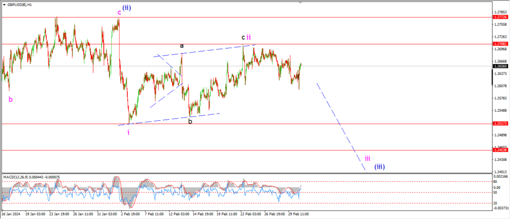 A quick turn around that drops below 1.2500 again will favor the main wave count for wave ‘iii’ of (iii).