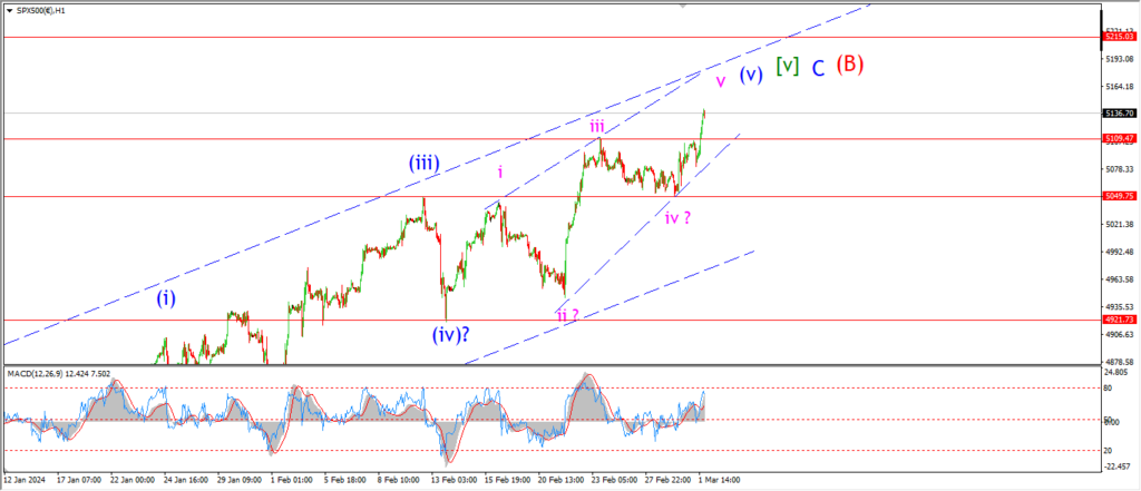 so wave ‘v’ of (v) will tend to reach into that 5200 level to complete wave (v) of [v] of ‘C’ later next week.