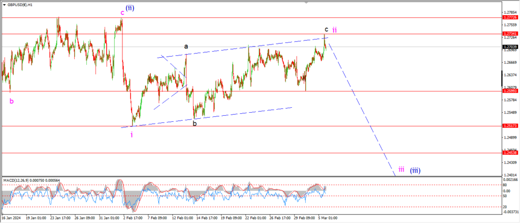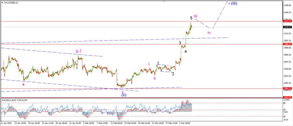 then we will see a clear five wave pattern trace out over the next week as shown on the hourly chart.