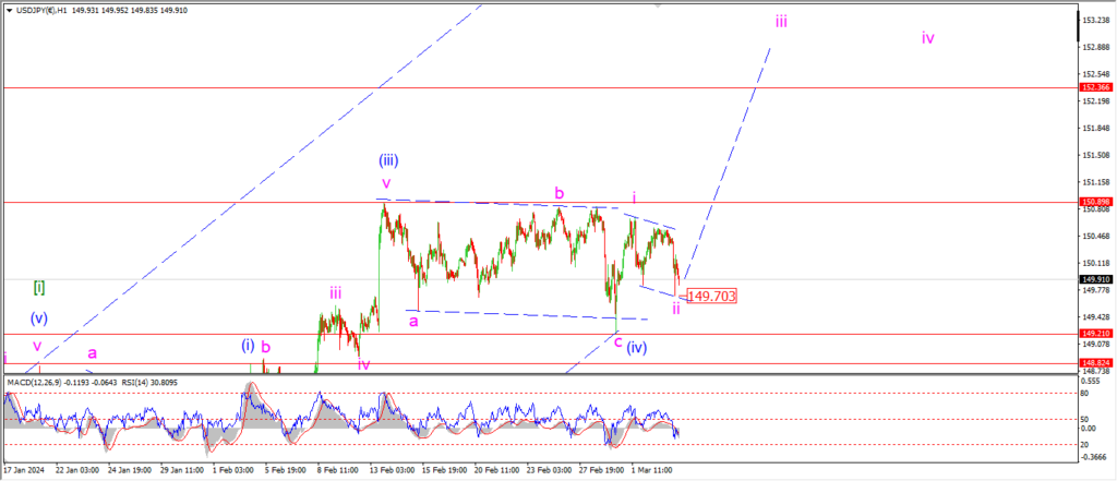 USDJPY has traced out three waves down into todays lows at 149.70.