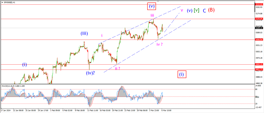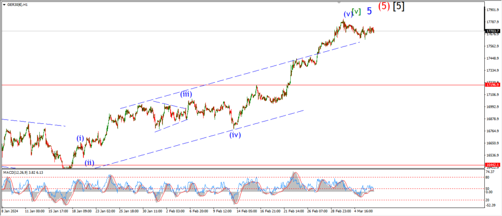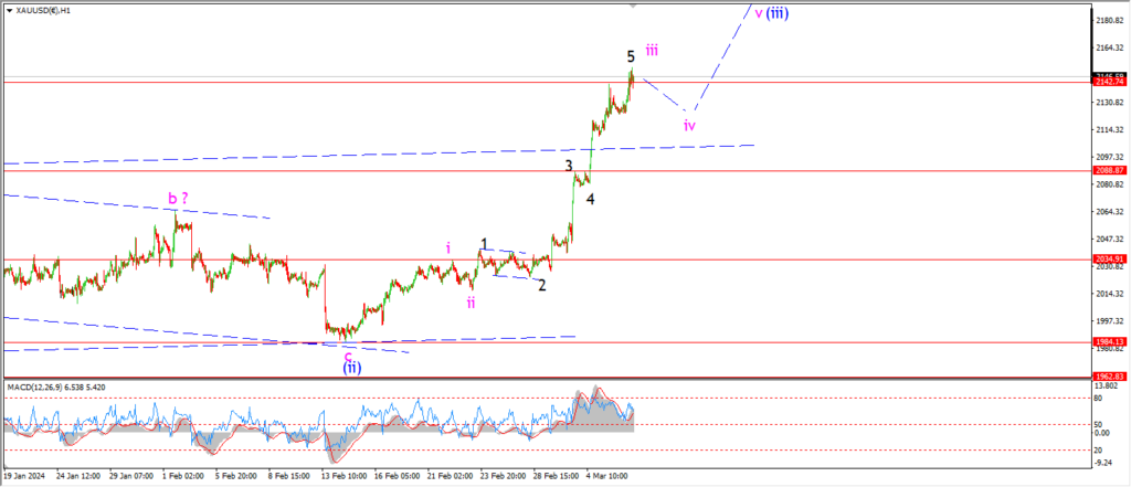 Wave ‘iii’ of (i) has traced out five waves up at todays highs.
