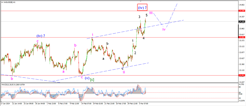 Silver actually managed to push higher today which has strengthened this short term count a little.